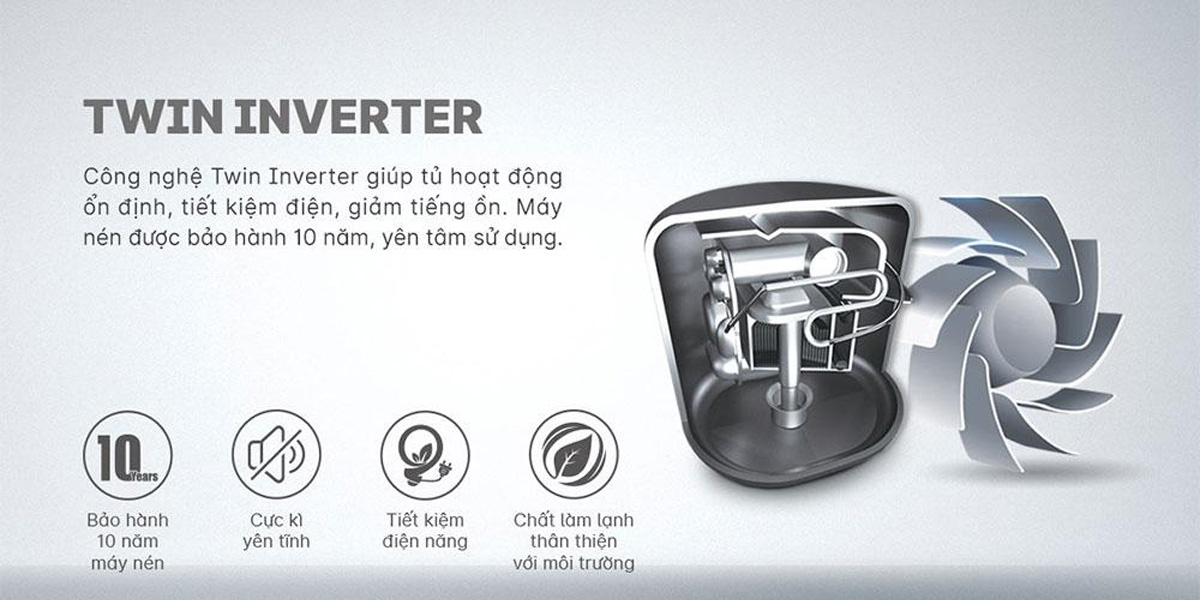 - Twin Inverter vận hành êm ái, tiết kiệm điện