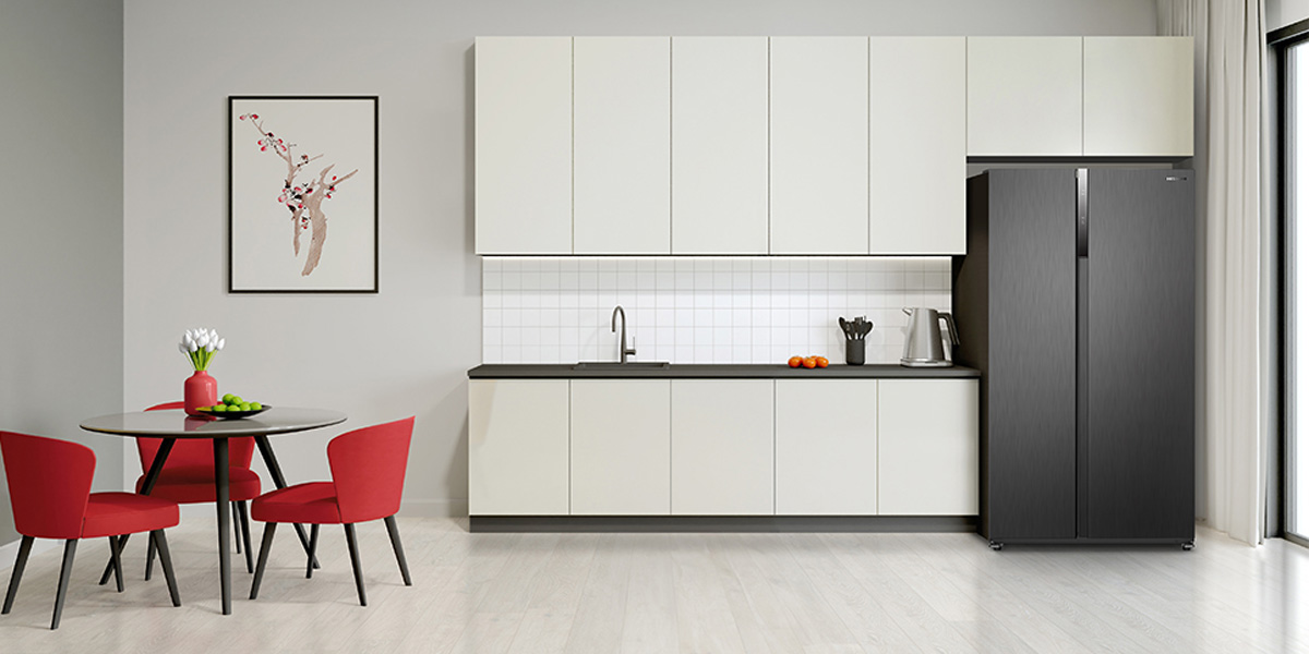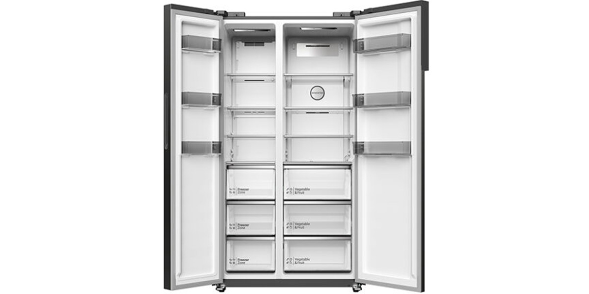 Tủ với ngăn đông nằm bên trái, ngăn lạnh nằm bên phải tủ được thiết kế chia đôi theo chiều dọc, mỗi bên có nhiều kệ riêng biệt giúp người dùng có thể dễ dàng phân chia thực phẩm bảo quản theo từng khu vực khác nhau, hạn chế tình trạng lẫn mùi thực phẩm khi dùng.
